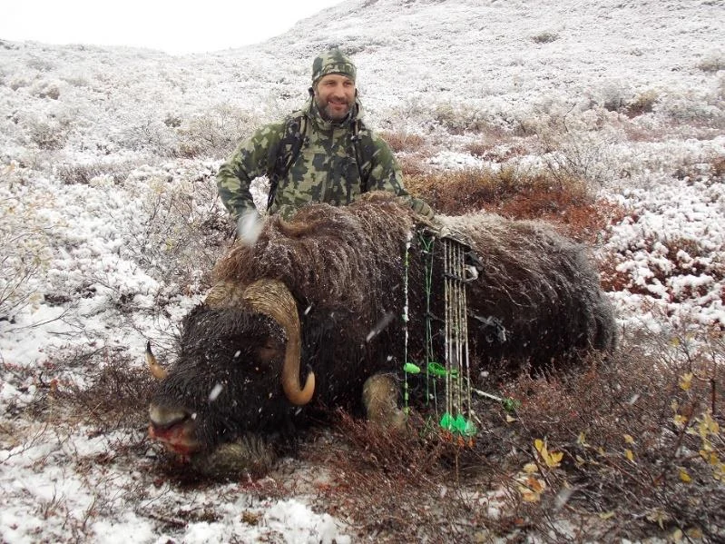 Shooting distances average 50 to 300 yards for rifle hunters and 20 to 40 yards for archery hunters. It is very common to shoot a muskox on the first day of the hunt, using the additional days to fill your secondary tag . The secondary tag which we have included in this Prize entitles our winner to harvest either a second muskox or a caribou, whichever the winner chooses. Immature bulls as well as female muskox are not taken as only old, mature bulls are harvested.